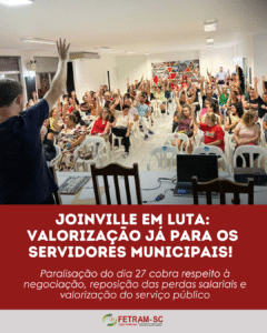 Servidores de Joinville aprovam paralisação para sexta-feira (27) em assembleia 25 de fevereiro de 2026 Nenhum comentário A Fetram-SC manifesta total apoio à paralisação dos servidores municipais Leia Mais »